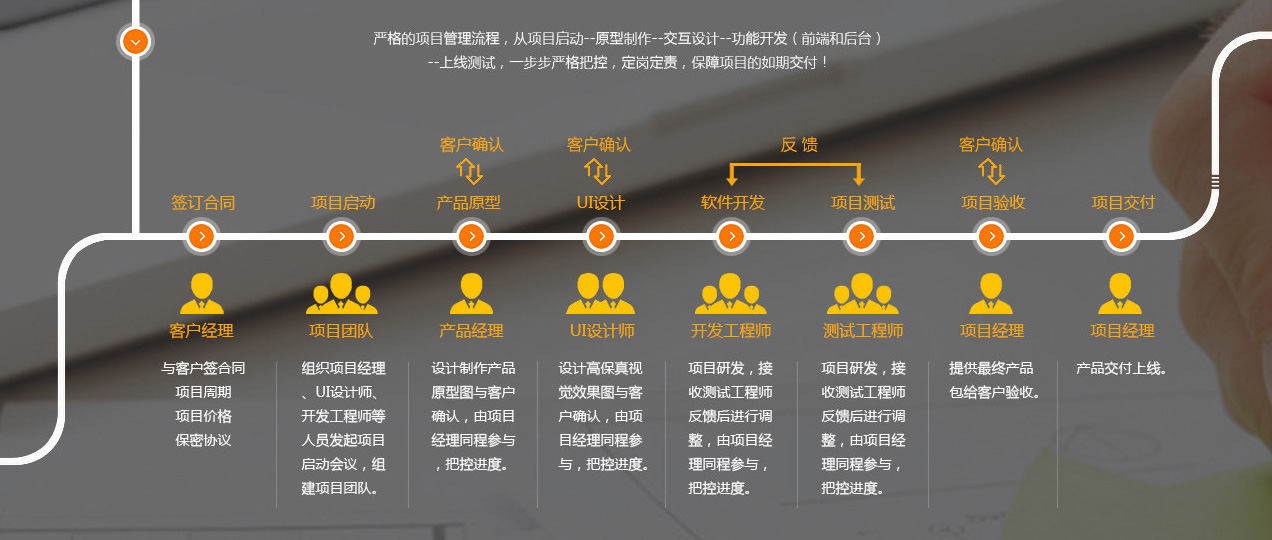 強(qiáng)大的設(shè)計及技術(shù)團(tuán)隊 · 擁有成功的合作經(jīng)驗 · 標(biāo)準(zhǔn)化作業(yè)體系 · 一對一百分百服務(wù) · 獨享的顧問式貼身服務(wù)